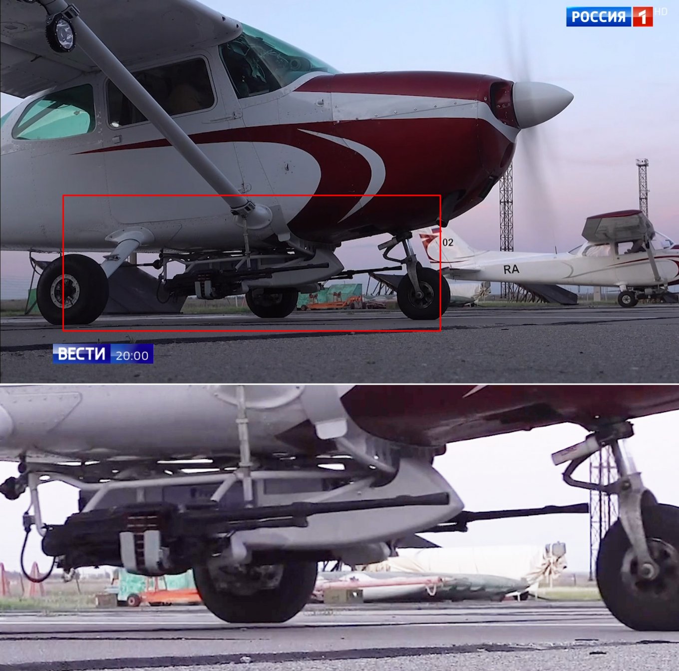 More notably, the footage also shows two Cessna 172 aircraft fitted with a far more sophisticated weapons system — a twin-machine-gun mount installed under the fuselage. The assembly appears to include not only the guns themselves, but also integrated ammunition feed and power systems.