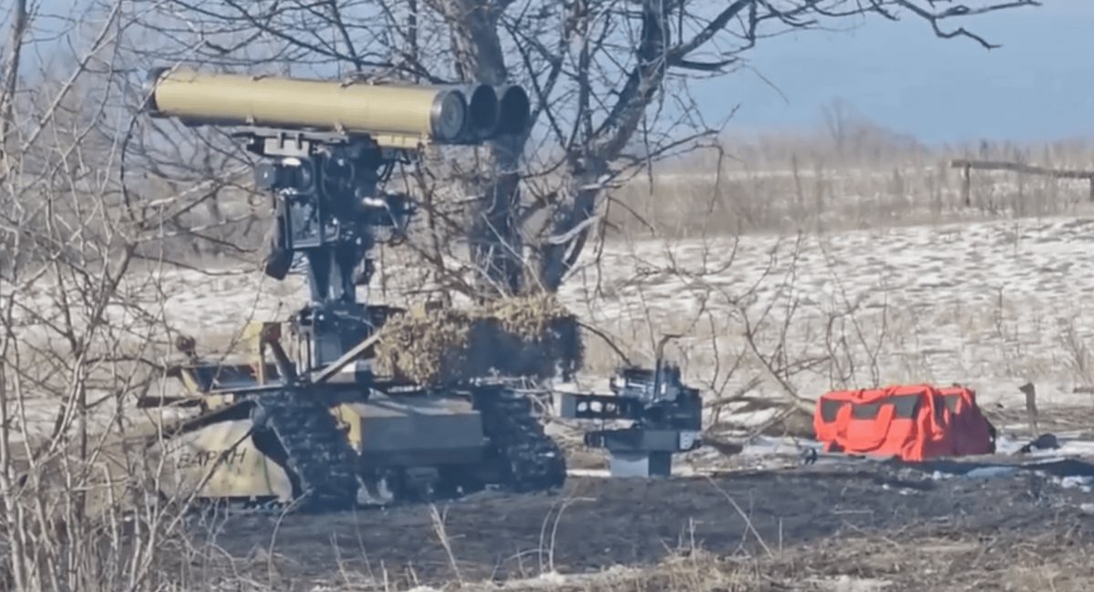 A new video has surfaced online showing another russian experiment with ground-based robotic platforms. This time, it features an unmanned platform called Varan, which has been fitted with the Okhotnik combat module carrying three Kornet anti-tank missile launchers. The system is remotely controlled via cable or radio.
