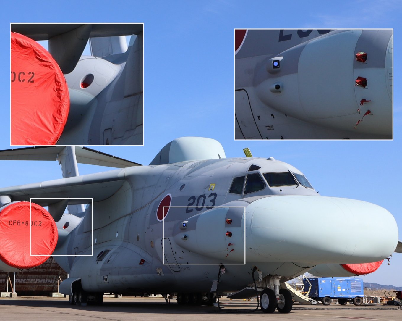 In addition to this tool, the new aircraft also received additional systems that the Kawasaki EC-1 did not have. In particular, on the upper part of the Kawasaki EC-2 SOJ fuselage, immediately behind the cockpit, there is another fairing, which apparently hides a system that, given the different color of the radio-transparent paint, has a sector view only forward.